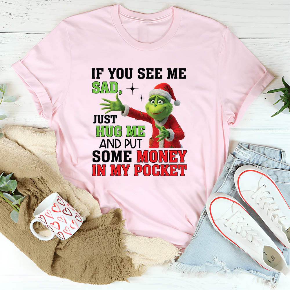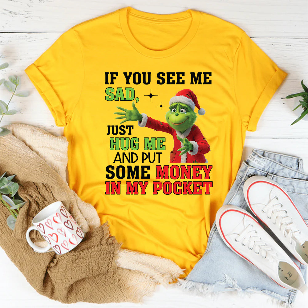 Funny, cheeky, and full of personality, the “If You See Me Sad, Just Hug Me and Put Some Money in My Pocket” T-shirt is perfect for anyone who mixes humor with a little self-care… and a love for cash. It’s a playful way to let people know how to cheer you up—your way.