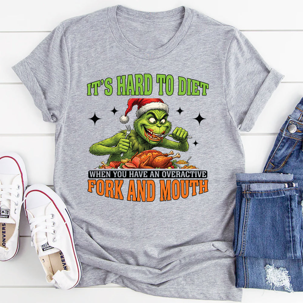 Funny, relatable, and full of foodie humor, the “It’s Hard to Diet When You Have an Overactive Fork and Mouth” T-shirt is perfect for anyone whose love of food always wins. It’s a playful celebration of indulgence, laughter, and not taking life—or dieting—too seriously.