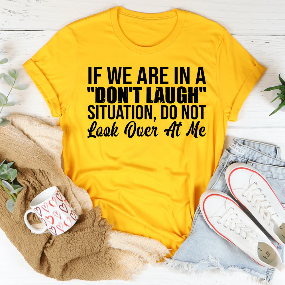 Playful, relatable, and guaranteed to get a laugh—the “If We Are in a ‘Don’t Laugh’ Situation, Do Not Look Over at Me” T-shirt is perfect for anyone who completely loses it the moment they make eye contact during a serious moment.