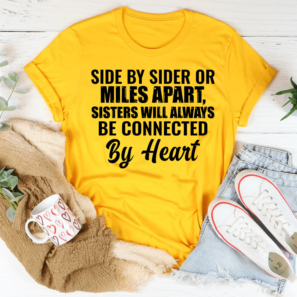 Sweet, meaningful, and full of love. The “Side by Side or Miles Apart, Sisters Will Always Be Connected by Heart” T-shirt celebrates the unbreakable bond shared between sisters—no matter the distance.