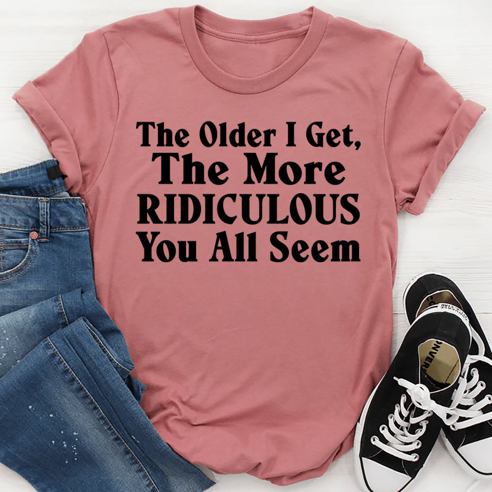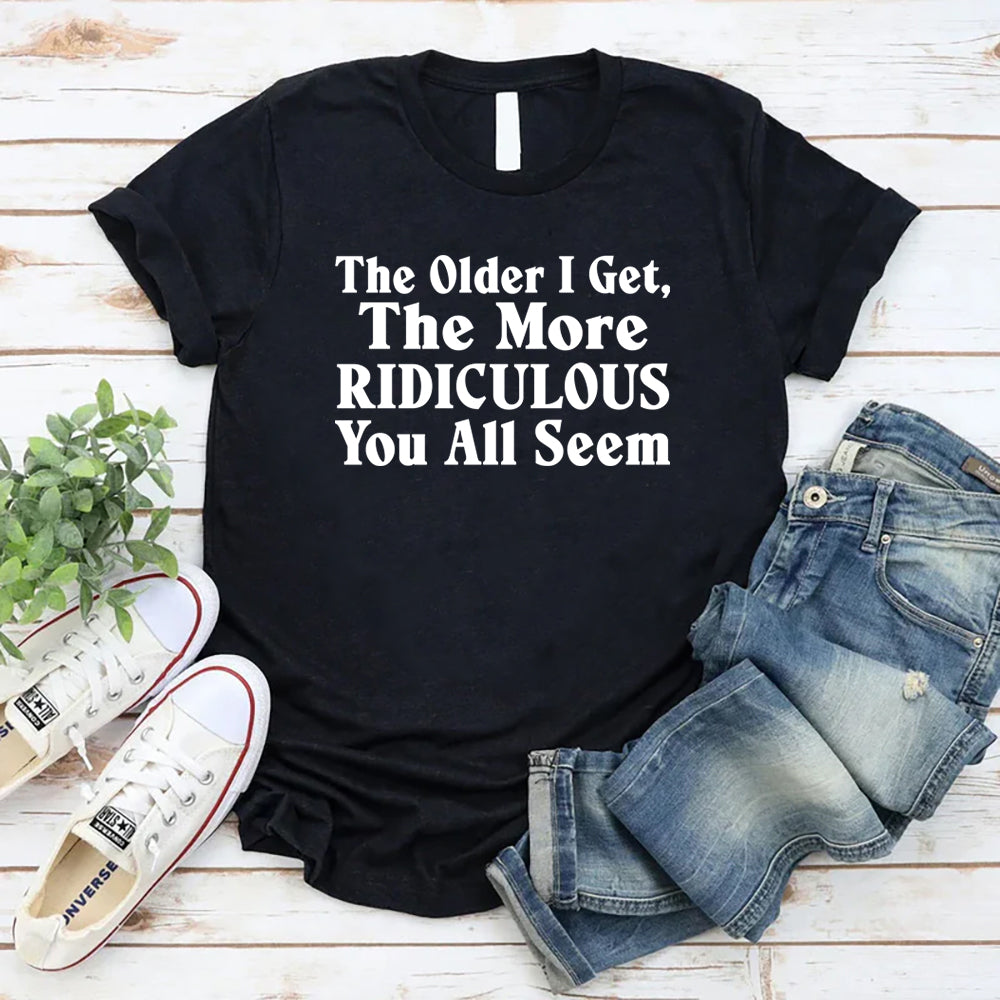Funny, blunt, and hilariously relatable—the “The Older I Get, The More Ridiculous You All Seem” T-shirt is perfect for anyone who’s mastered the art of noticing life’s absurdities. It’s a witty way to let the world know that age brings wisdom… and zero tolerance for nonsense.