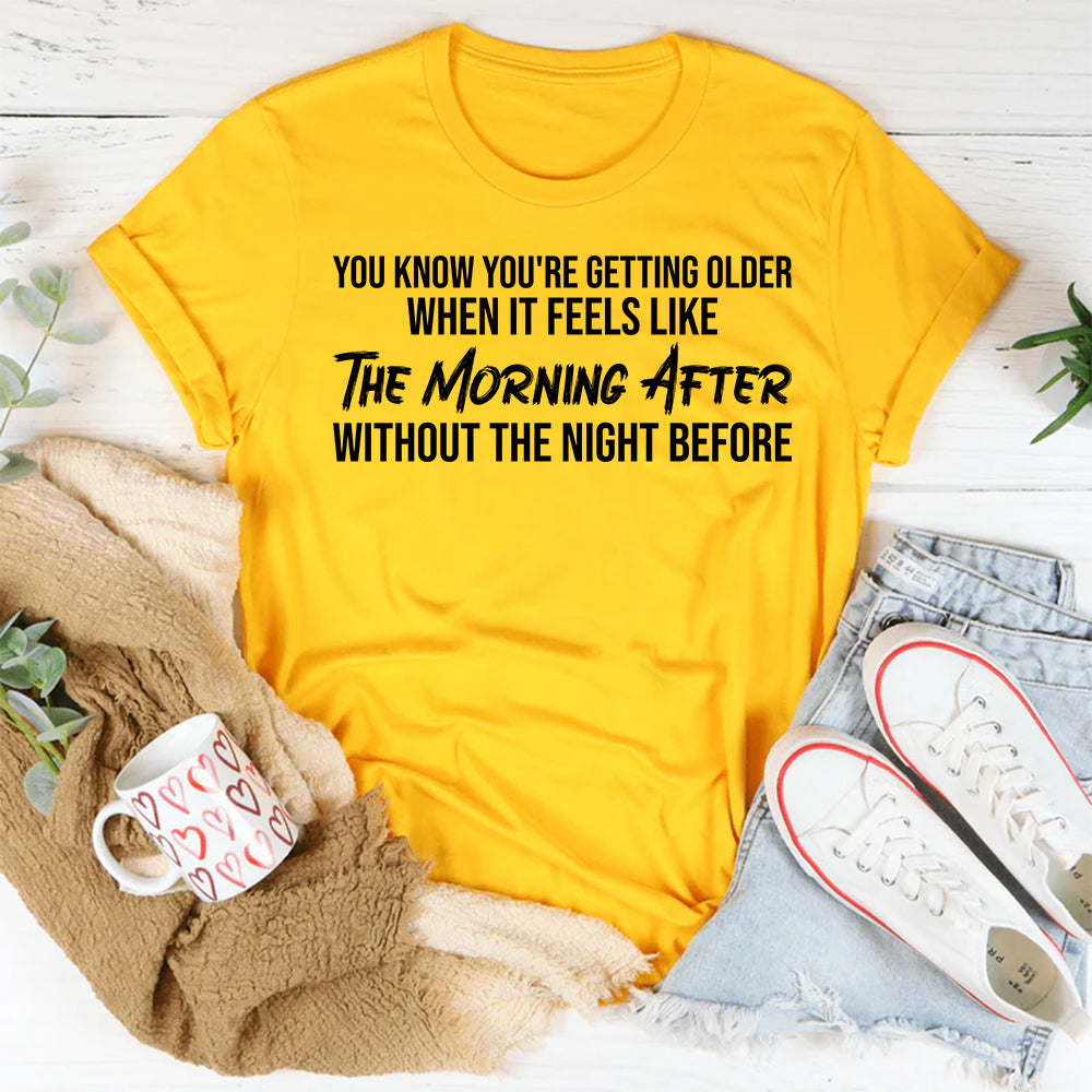 Funny, relatable, and perfectly honest. The “You Know You’re Getting Older When It Feels Like the Morning After Without the Night Before” T-shirt is for anyone who’s noticed that hangovers now come without the party. Because aging is real… and sometimes hilariously unfair.
