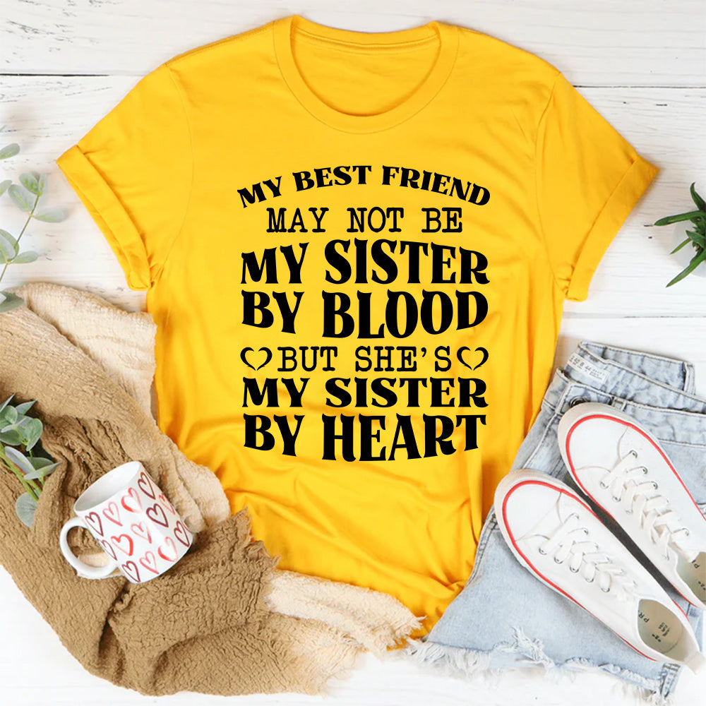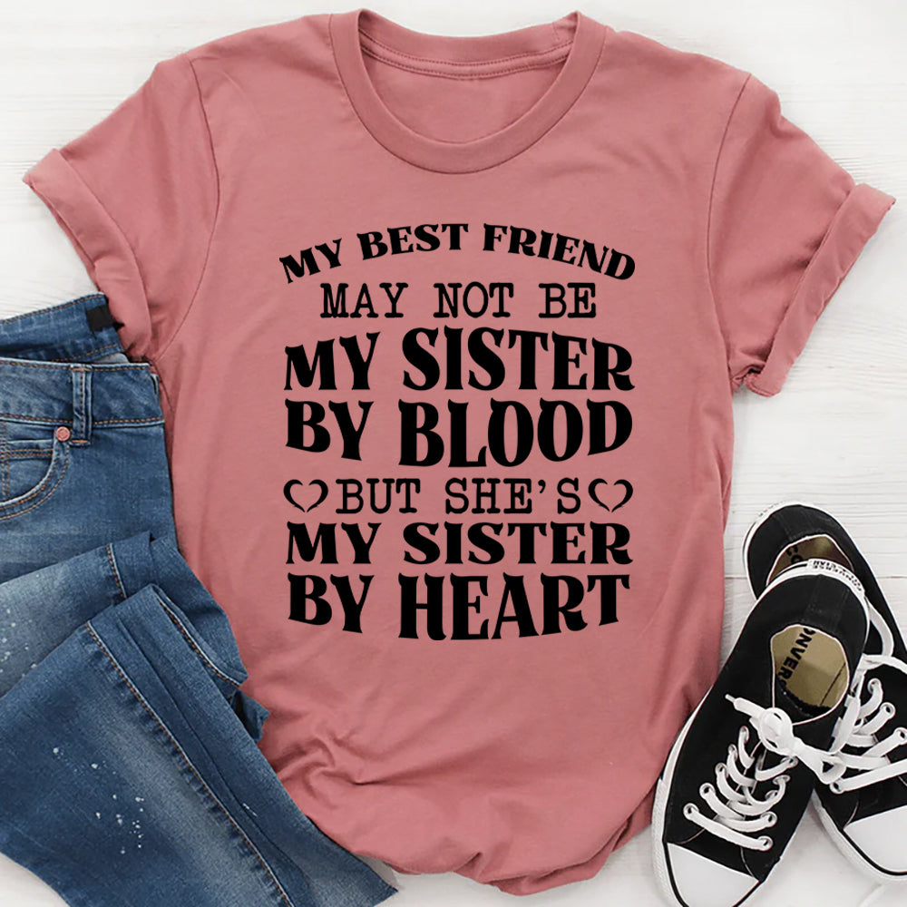 Heartfelt, sweet, and full of love. The “My Best Friend May Not Be My Sister by Blood, but She’s My Sister by Heart” t-shirt celebrates the unbreakable bond between friends who are family in every way that matters. Perfect for anyone who cherishes their chosen sisterhood.
