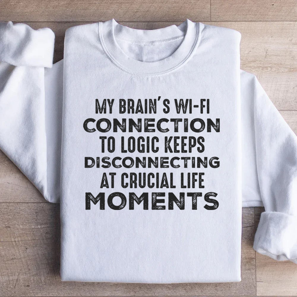This “My Brain’s Wi-Fi Connection to Logic Keeps Disconnecting at Crucial Life Moments” sweatshirt is for anyone whose thoughts lose signal the second life demands rational decisions. Perfect for overthinkers, impulsive adventurers, and anyone who’s ever confidently chosen chaos over common sense.