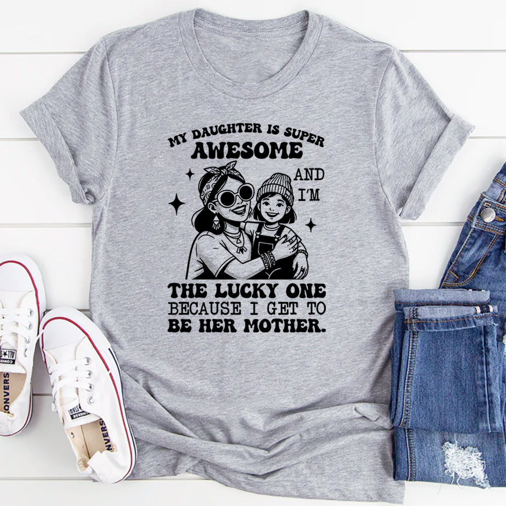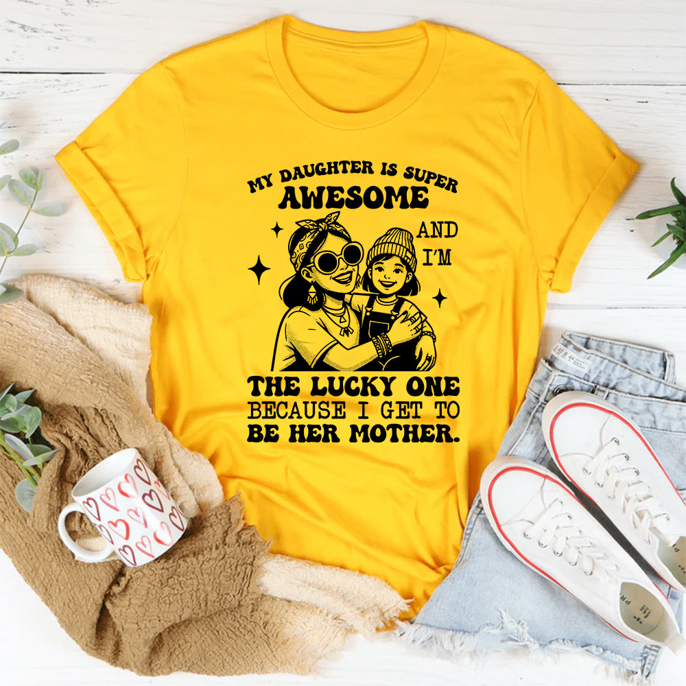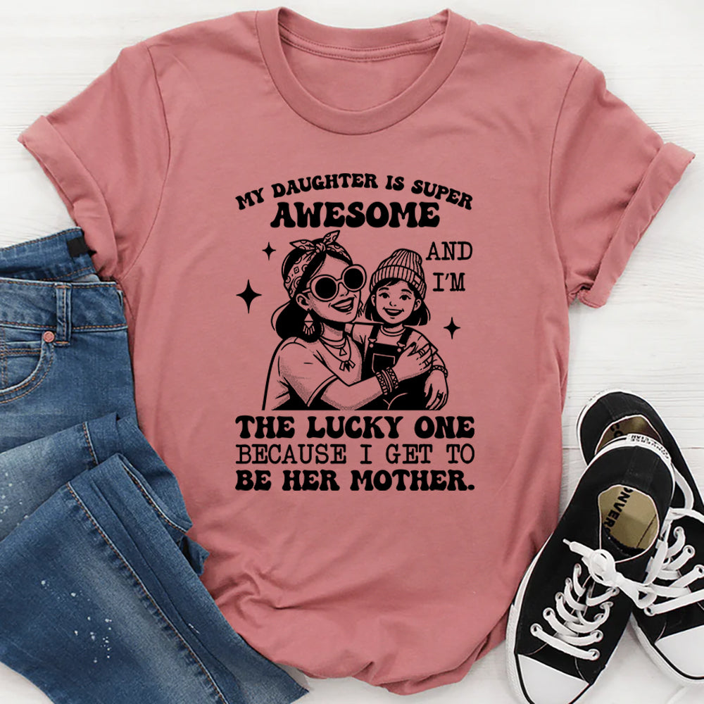Heartfelt, loving, and full of pride. The “My Daughter Is Super Awesome and I’m the Lucky One Because I Get to Be Her Mother” t-shirt is a beautiful expression of the bond between a mother and her daughter. It celebrates love, gratitude, and the joy of motherhood in the most genuine way.