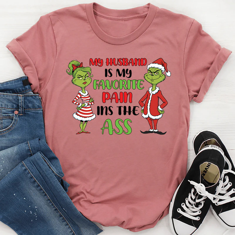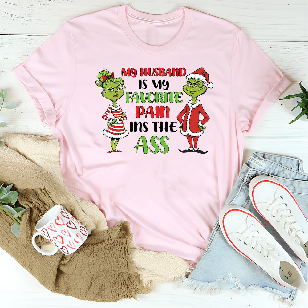 Funny, playful, and full of love. The “My Husband Is My Favorite Pain in the Ass” T-shirt is perfect for anyone who loves their spouse… quirks and all. Witty, relatable, and a little cheeky, this tee turns marriage humor into a laugh-out-loud statement.