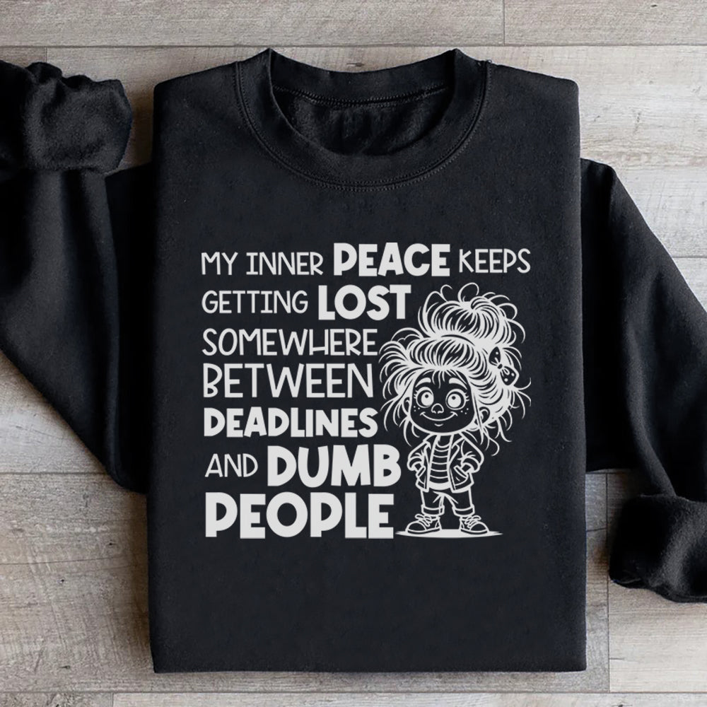 This “My Inner Peace Keeps Getting Lost Somewhere Between Deadlines and Dumb People” sweatshirt is the unofficial uniform for anyone trying to stay calm in a world that clearly doesn’t want them to. It’s for the overworked, under-rested souls who start each day with good intentions — and lose them somewhere between emails, meetings, and questionable human behavior.