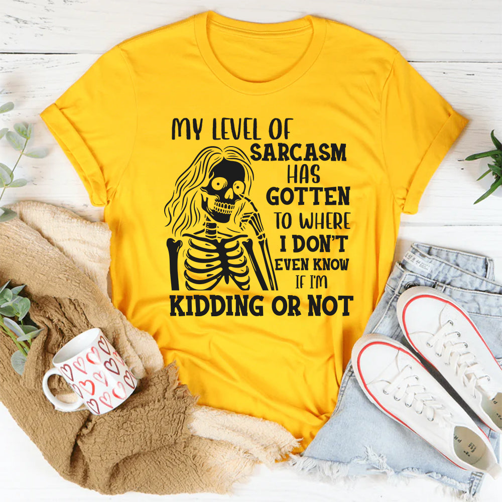 When sarcasm becomes second nature, even you start to wonder if you’re joking. This “My Level of Sarcasm Has Gotten to Where I Don’t Even Know If I’m Kidding or Not” t-shirt perfectly captures that fine line between humor and honesty.