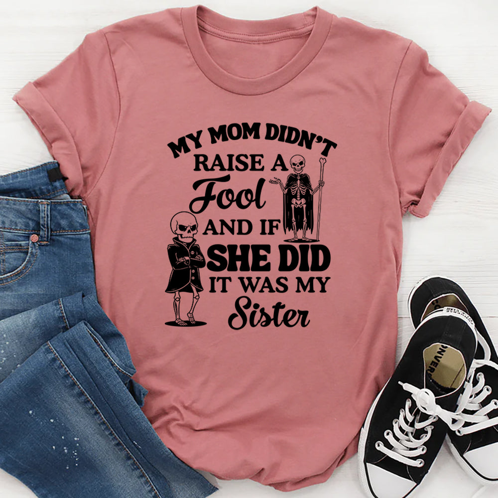 Sharp, funny, and full of attitude. The “My Mom Didn’t Raise a Fool — And If She Did, It Was My Sister” T-shirt is perfect for anyone who loves playful family humor and a little sibling roasting. Witty, bold, and relatable, this tee turns family dynamics into a laugh-out-loud statement.