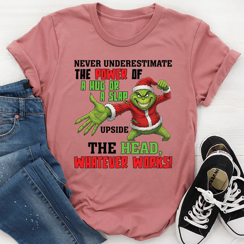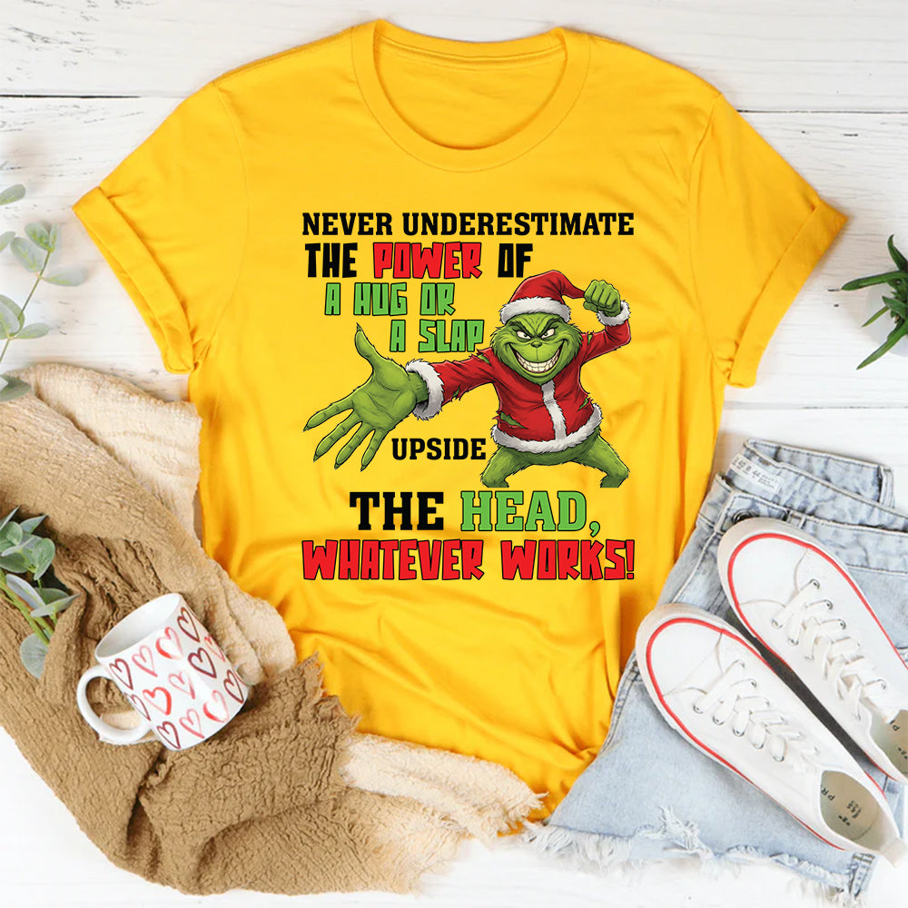 Funny, bold, and delightfully honest. The “Never Underestimate the Power of a Hug or a Slap Upside the Head, Whatever Works!” t-shirt is made for anyone who believes in tough love—with a sense of humor. It’s a playful nod to life’s lessons, balance, and knowing when comfort or a reality check is needed.