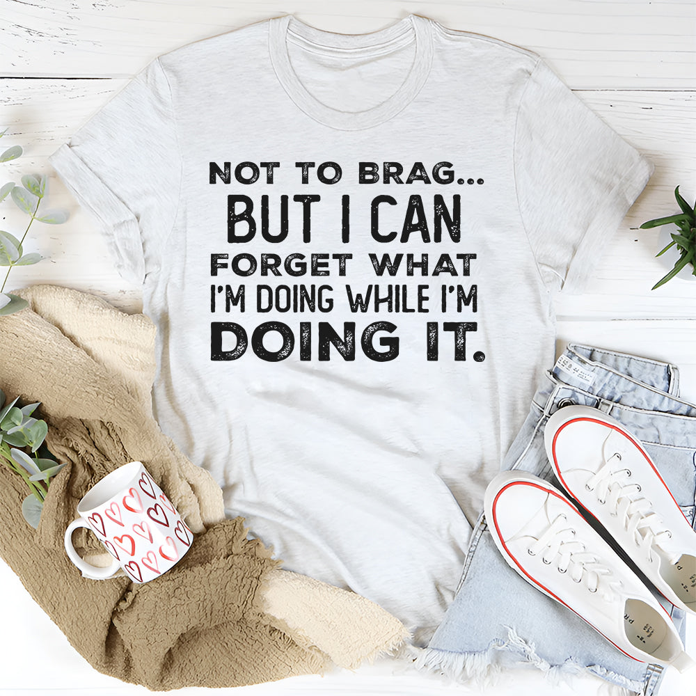 Keep the laughs coming with the “Not to Brag but I Can Forget What I’m Doing While I’m Doing It” t-shirt. Perfect for anyone who embraces their forgetful side, this tee delivers humor and relatability in the most stylish way.