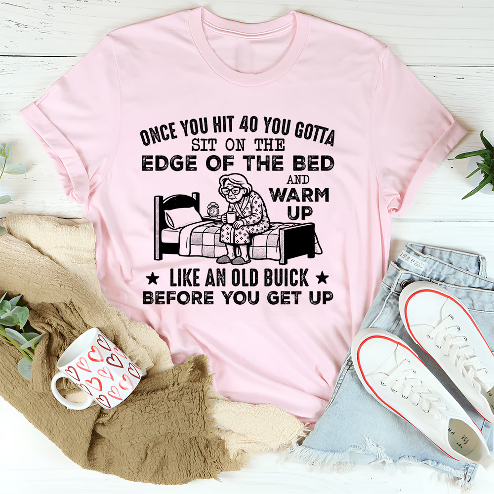 Funny, relatable, and full of charm, the “Once You Hit 40, You Gotta Sit on the Edge of the Bed and Warm Up Like an Old Buick Before You Get Up” T-shirt is perfect for anyone who’s embraced the humor in getting older. It’s a playful nod to the little quirks of age that make life… well, a bit slower but way funnier.