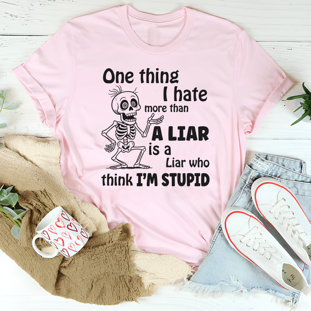 Make your stance crystal clear with the “One Thing I Hate More Than a Liar Is a Liar Who Thinks I’m Stupid” t-shirt. Perfect for anyone who values honesty and isn’t afraid to call out the nonsense, this tee combines bold attitude with everyday style.