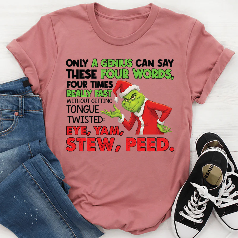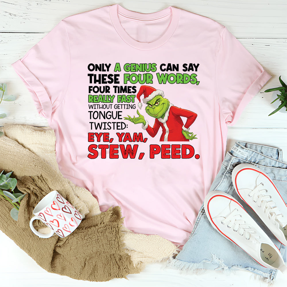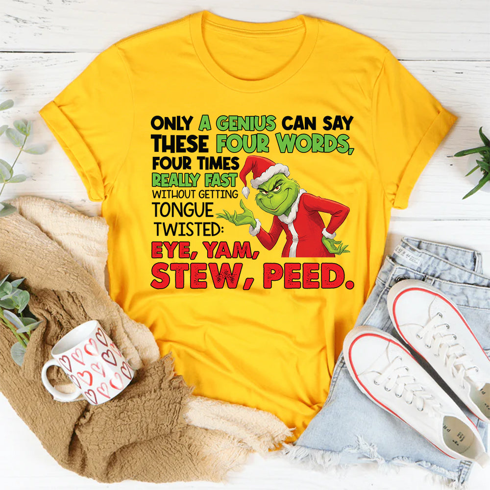 Funny, clever, and tongue-twistingly challenging. The “Only a Genius Can Say These Four Words, Four Times Really Fast Without Getting Tongue Twisted: Eye, Yam, Stew, Peed” T-shirt is perfect for anyone who loves a good brain teaser, a laugh, or showing off their verbal skills. It’s a playful way to mix wit with a little friendly challenge.