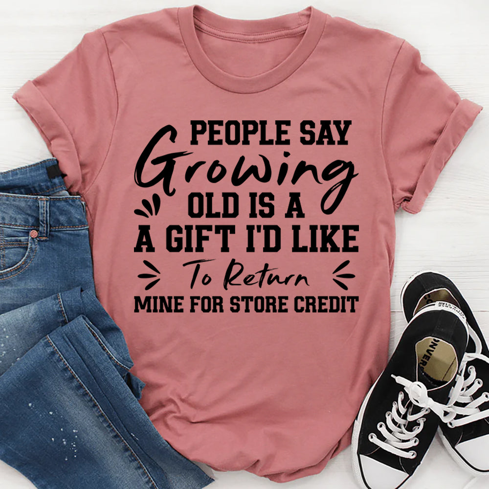 Witty, sarcastic, and brutally honest. The “People Say Growing Old Is a Gift—I’d Like to Return Mine for Store Credit” T-shirt is for anyone who’s tired of the aches, wrinkles, and “back in my day” lectures—but still keeps their sense of humor intact. It’s a playful jab at aging with zero sugarcoating.