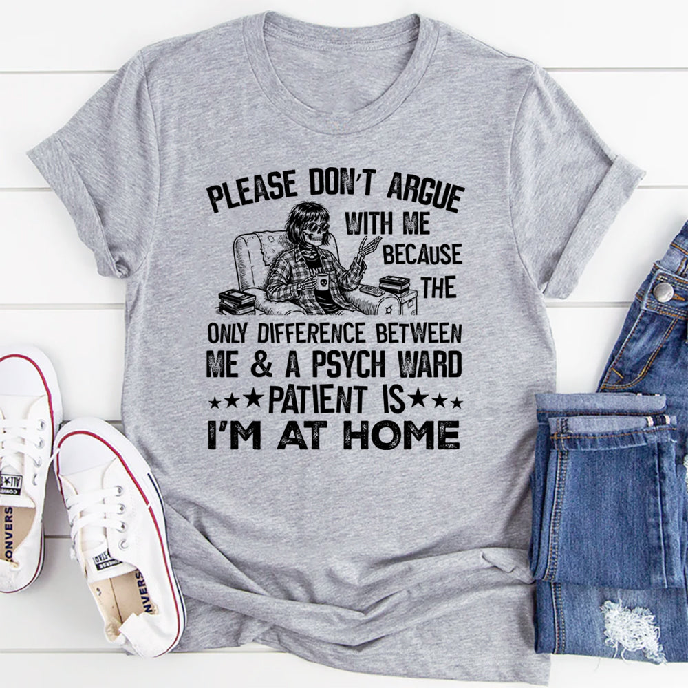 Bold, sarcastic, and hilariously unapologetic, the “Please Don’t Argue With Me Because the Only Difference Between Me & a Psych Ward Patient Is I’m at Home” T-shirt is perfect for anyone who’s done with nonsense and isn’t afraid to speak their truth. It’s a playful (and slightly edgy) warning that some people are just better left alone.