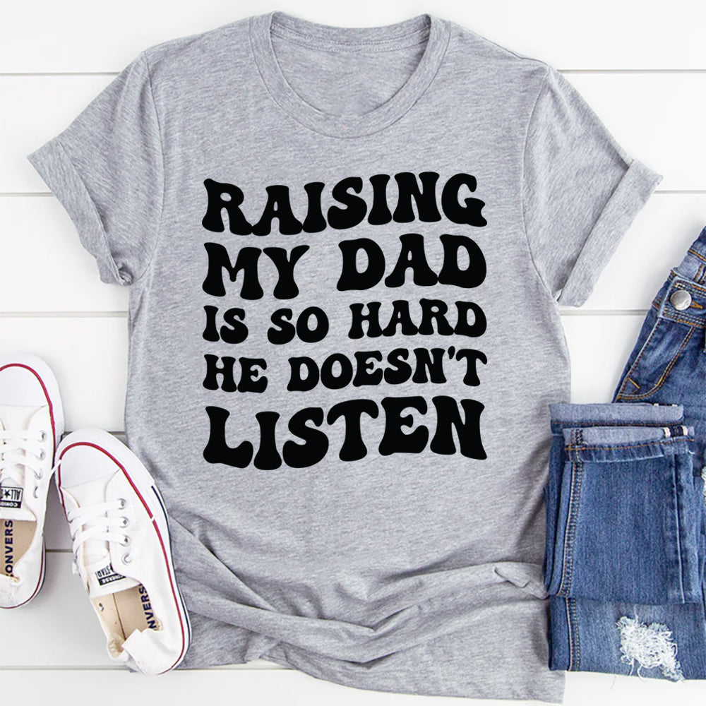 Funny, honest, and painfully relatable. The “Raising My Dad Is So Hard, He Doesn’t Listen” t-shirt is made for adult kids who’ve officially become the responsible one. It’s sarcastic, lighthearted, and perfect for anyone navigating stubborn dads and reversed roles with humor.