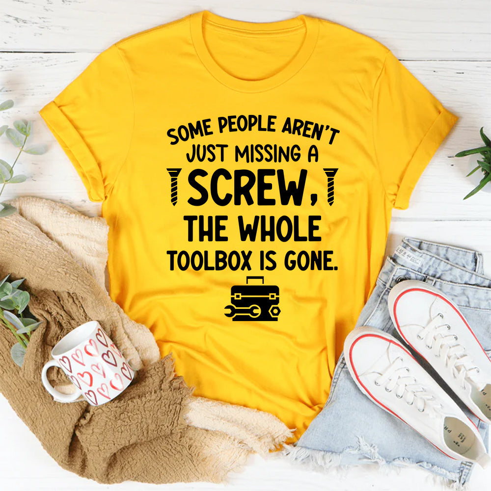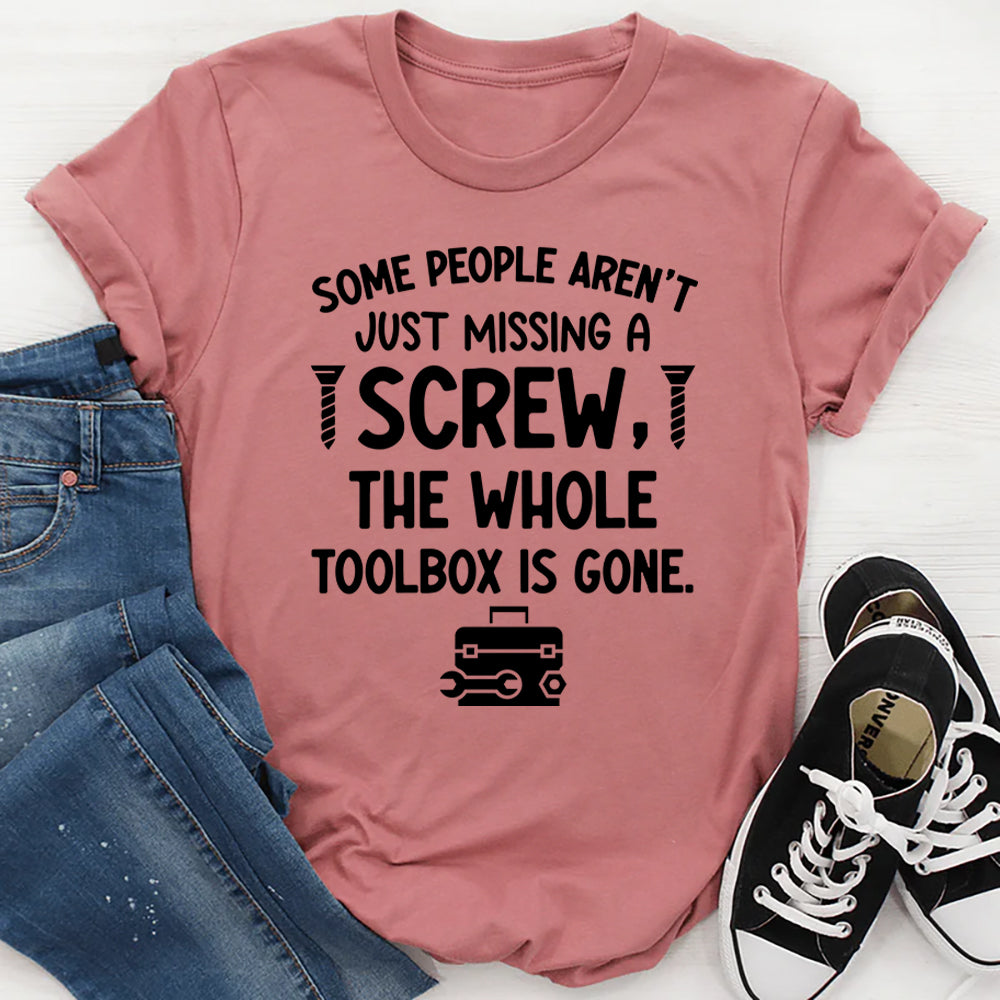 Witty, bold, and unapologetically sarcastic. The “Some People Aren’t Just Missing a Screw, the Whole Toolbox Is Gone” t-shirt is a sharp take on everyday absurdity. Perfect for anyone who has zero patience for nonsense and a strong appreciation for blunt humor.