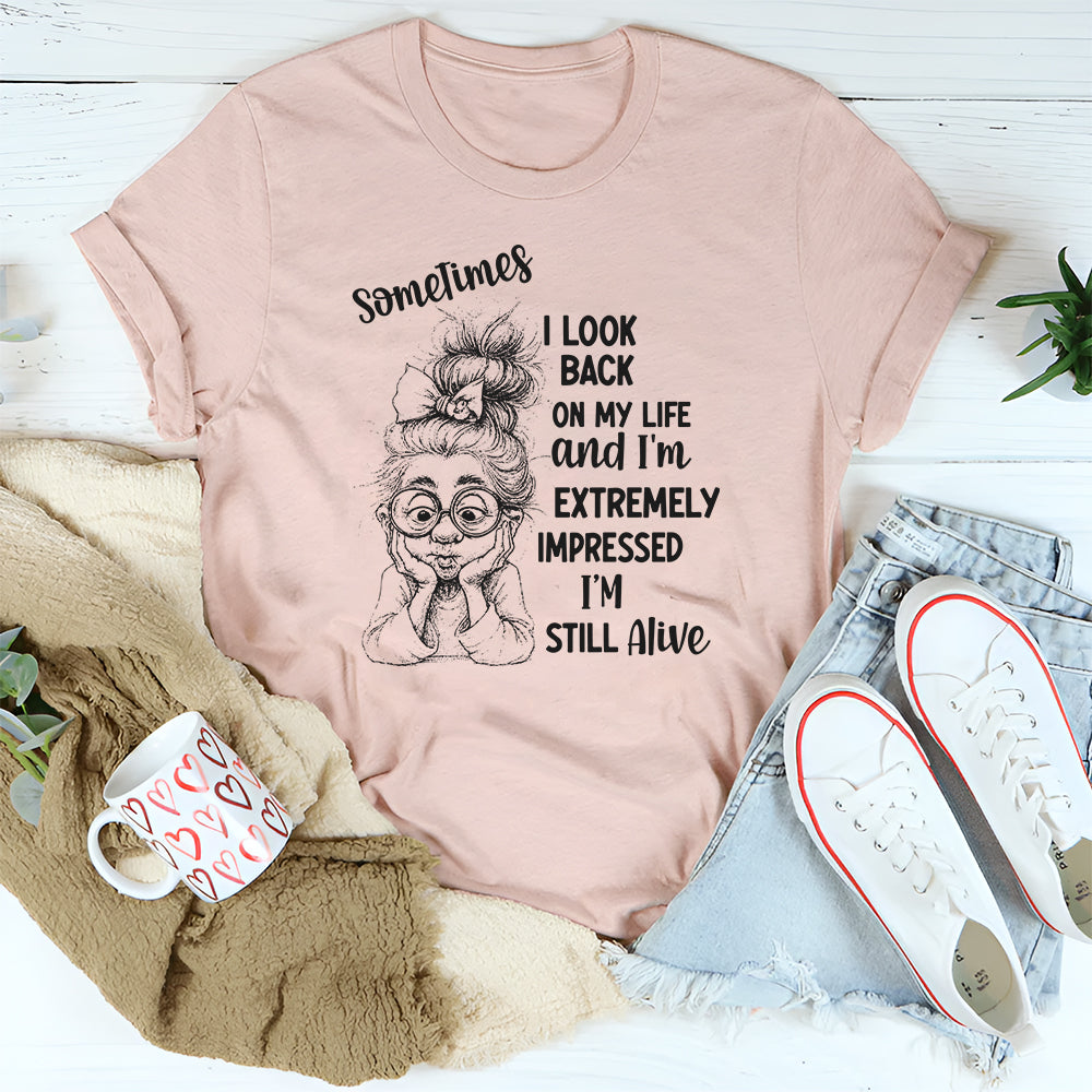Celebrate survival with this “Sometimes I Look Back on My Life and I’m Extremely Impressed I’m Still Alive” t-shirt. Funny, bold, and brutally honest, this tee is perfect for anyone who’s been through some wild times and can laugh about it now.