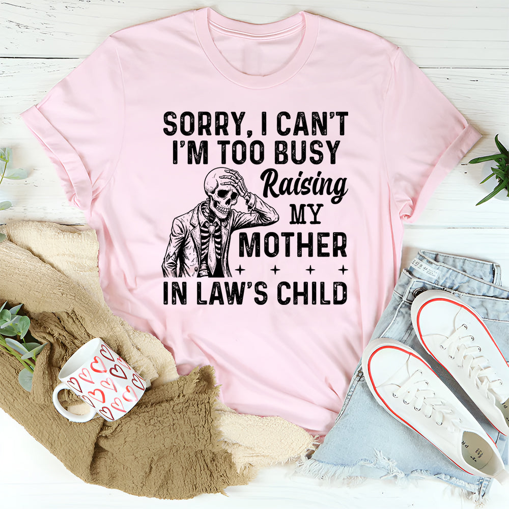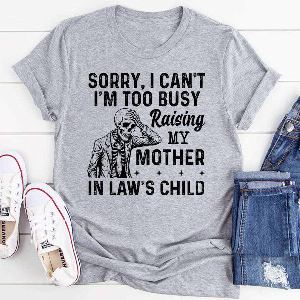 Funny, sarcastic, and delightfully cheeky. The “Sorry, I Can’t—I’m Too Busy Raising My Mother-in-Law’s Child” t‑shirt is perfect for anyone with a sharp sense of humor about family responsibilities. It’s a witty way to show that you’re juggling life with a side of sass.