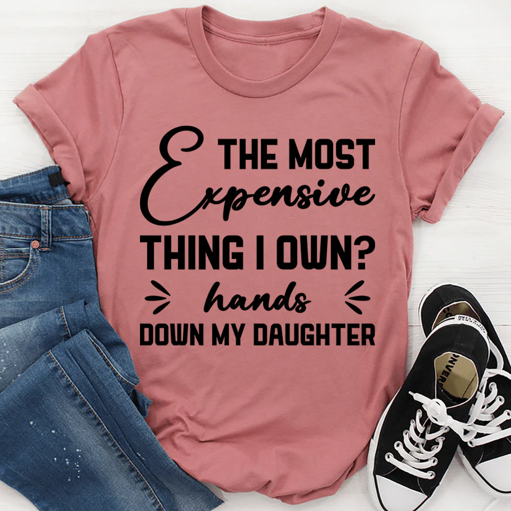 Heartfelt, witty, and proudly sentimental. The “The Most Expensive Thing I Own? Hands Down, My Daughter” t-shirt is a playful yet loving nod to the priceless value of family. It’s perfect for parents who want to show off their devotion with a side of humor.