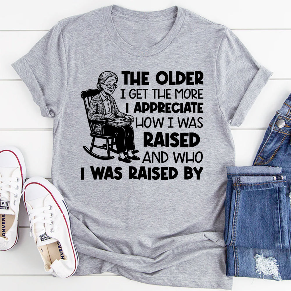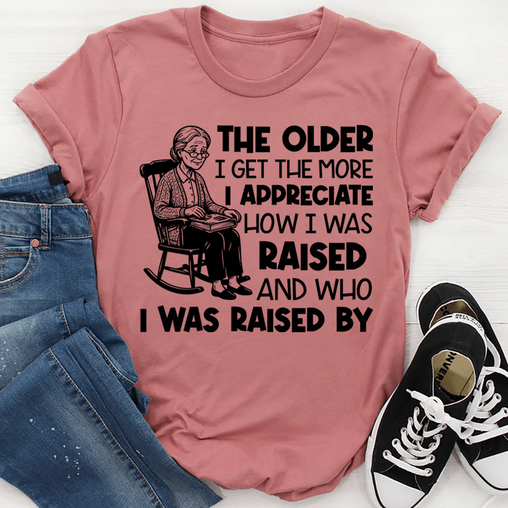 Heartfelt, bold, and unapologetically meaningful. The “The Older I Get, the More I Appreciate How I Was Raised and Who I Was Raised By” t‑shirt delivers a touching message with just the right amount of sentiment. Perfect for anyone who values family, upbringing, and the lessons that shaped them.