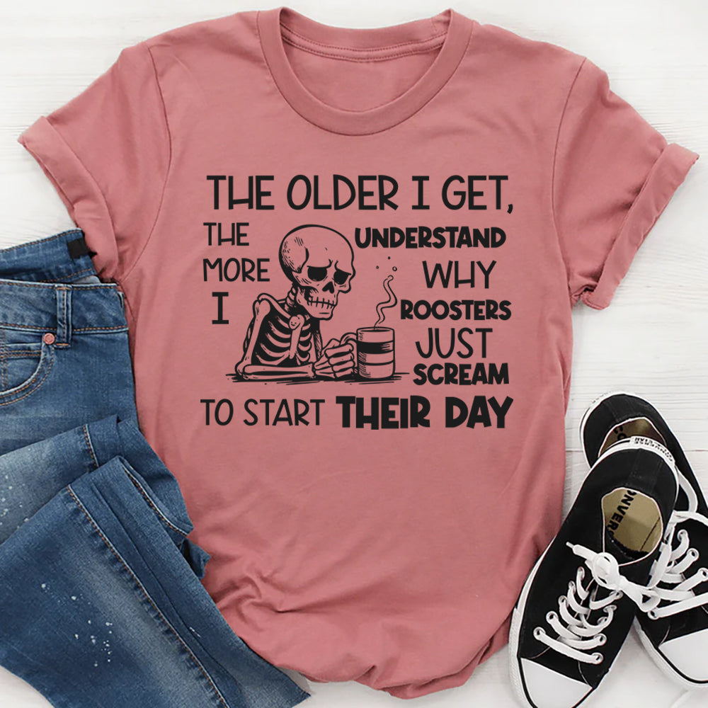 Mornings hit different when you’re older—and suddenly, you understand the rooster’s struggle. This “The Older I Get, The More I Understand Why Roosters Just Scream to Start Their Day” t-shirt perfectly sums up adulting with humor and honesty.