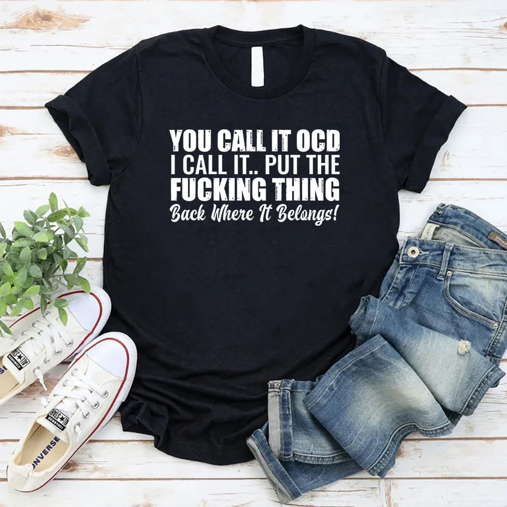 Funny, bold, and unapologetically precise. The “You Call It OCD, I Call It… Put the F*cking Thing Back Where It Belongs!” T-shirt is for anyone who values order—and isn’t afraid to speak their mind about it. Because some habits aren’t quirks… they’re necessities.