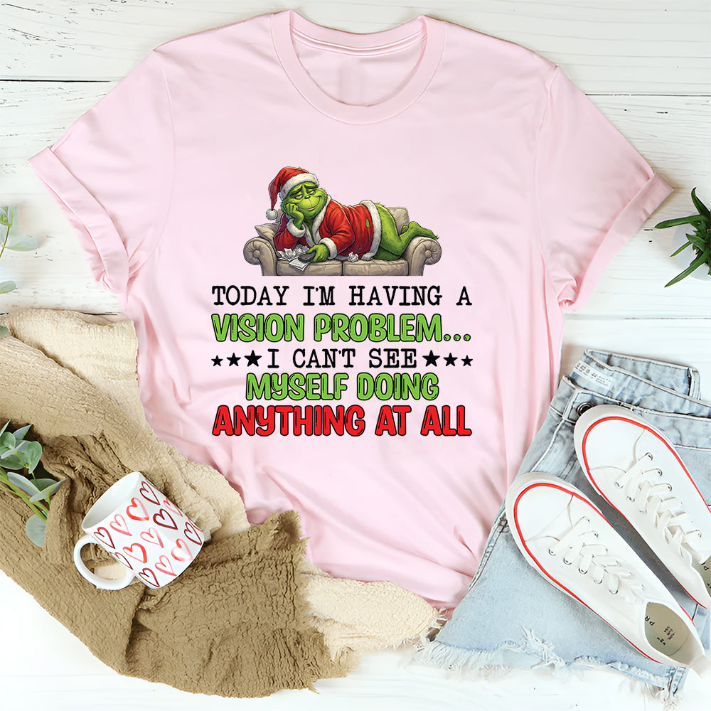 Funny, sarcastic, and effortlessly relatable. The “Today I’m Having a Vision Problem — I Can’t See Myself Doing Anything At All” T-shirt is made for those days when motivation is nowhere to be found and rest is the only plan. It’s the perfect way to say exactly how you’re feeling without having to explain yourself.