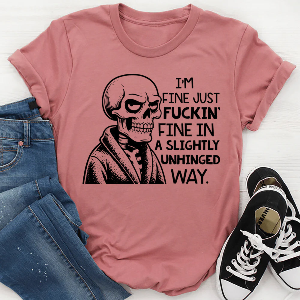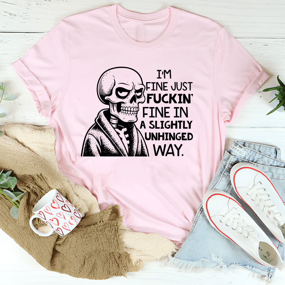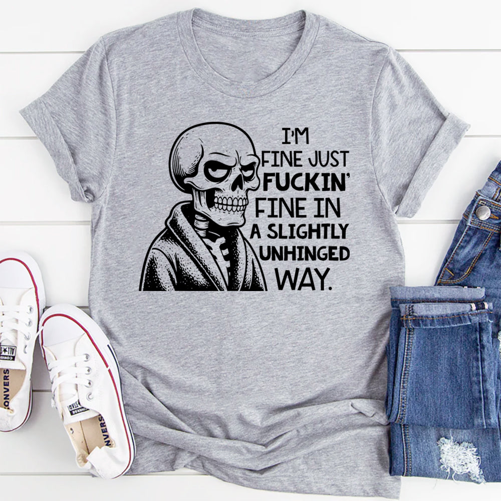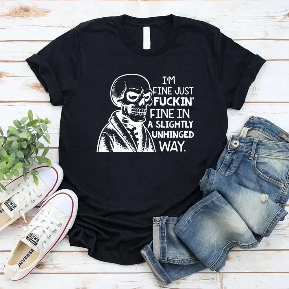 Bold, chaotic, and hilariously honest — the “I’m Fine, Just F*ckin’ Fine in a Slightly Unhinged Way” T-shirt is perfect for anyone holding it together… sort of. It’s a relatable mix of sarcasm and emotional honesty that turns everyday chaos into a statement piece.