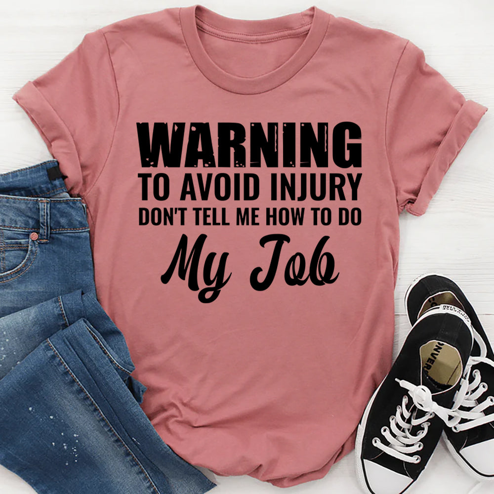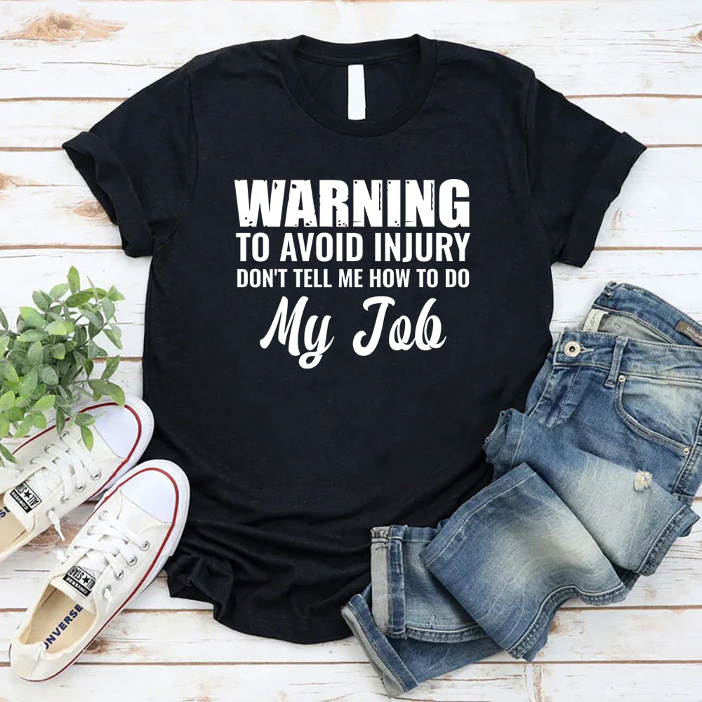 Bold, sassy, and hilariously unapologetic. The “Warning: To Avoid Injury, Don’t Tell Me How to Do My Job” T-shirt is for anyone who’s confident, capable, and done with unsolicited advice.