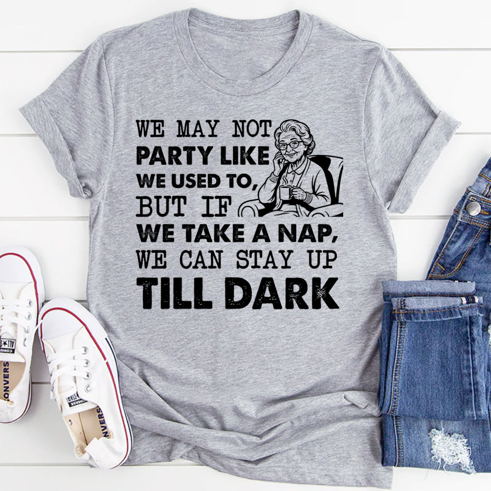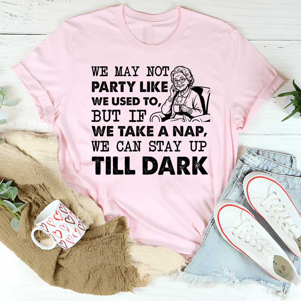 Funny, honest, and perfectly relatable. The “We May Not Party Like We Used To, But If We Take a Nap, We Can Stay Up Till Dark” t-shirt is made for anyone who’s mastered the fine art of pacing themselves. It’s a playful nod to growing up, embracing naps, and celebrating the little wins that come with experience.