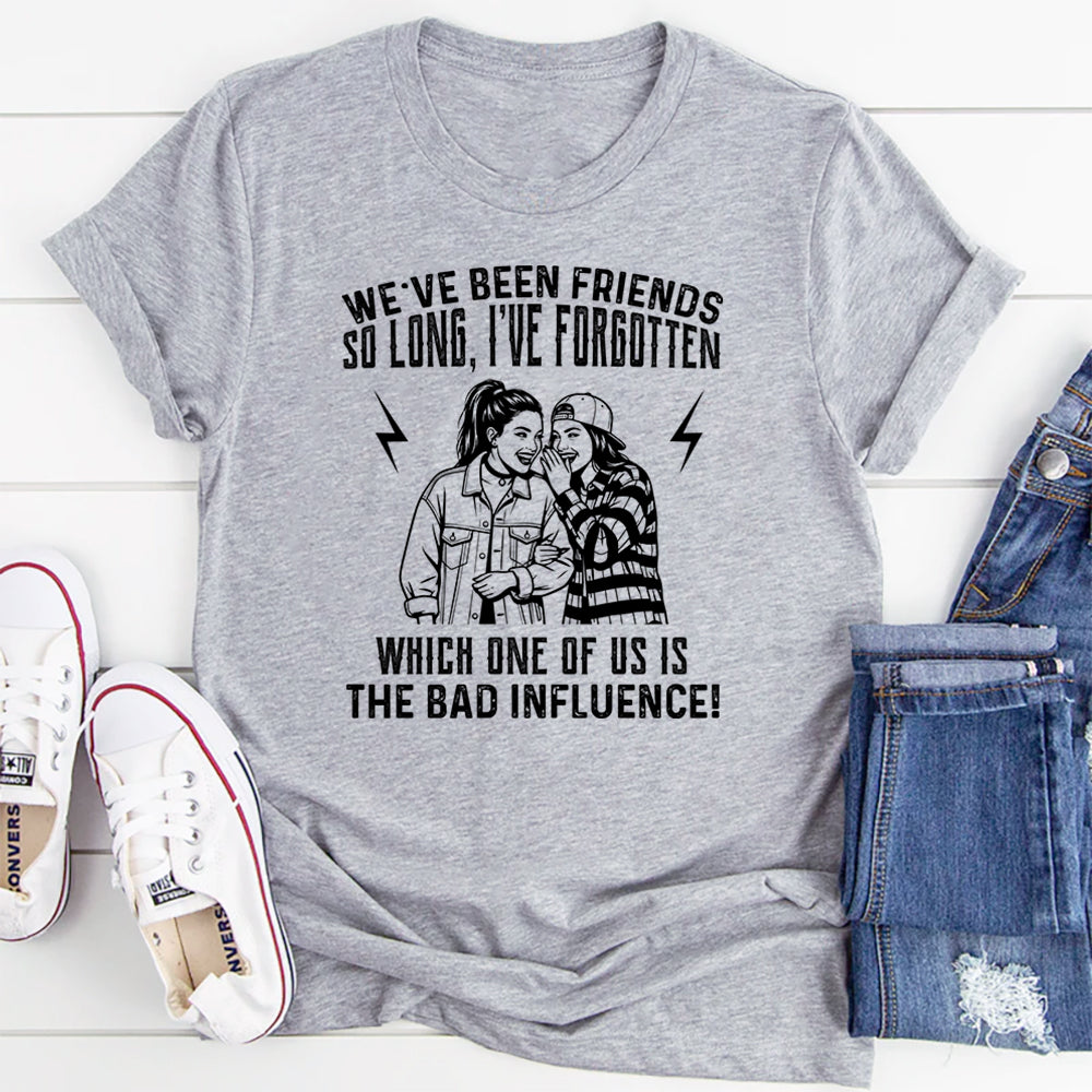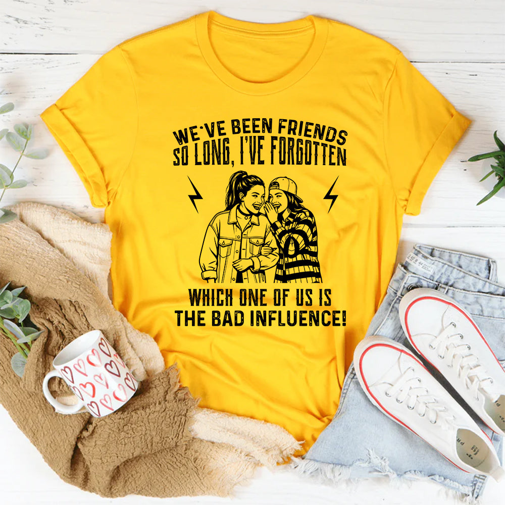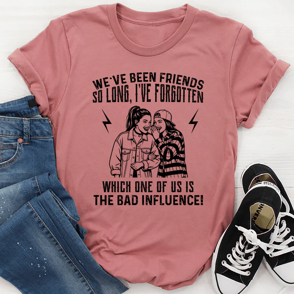 Funny, cheeky, and full of best-friend energy. The “We’ve Been Friends So Long, I’ve Forgotten Which One Of Us Is The Bad Influence” T-shirt is made for friendships built on laughter, chaos, and questionable decisions. It’s a playful nod to the kind of bond where trouble just… happens.
