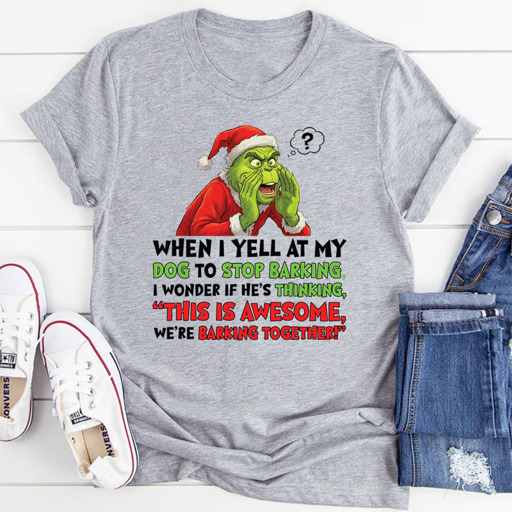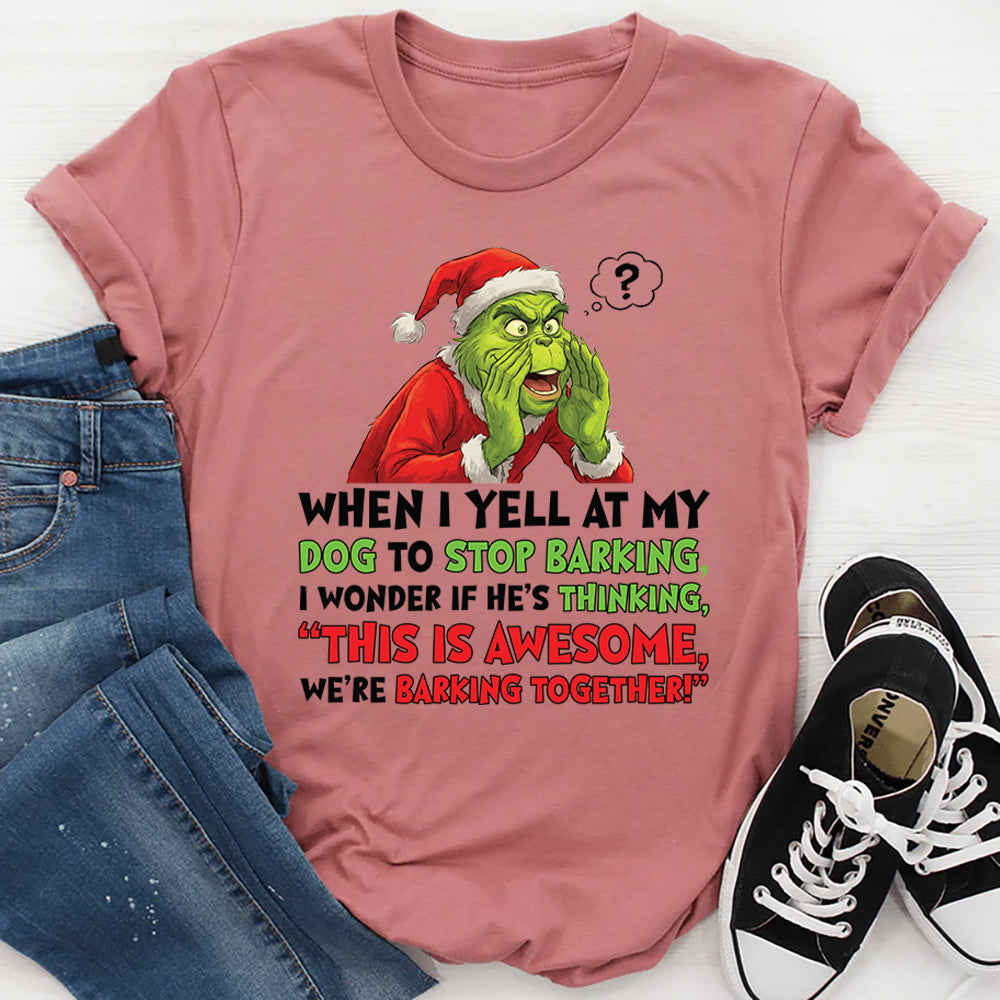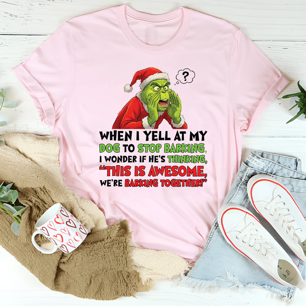 Funny, lighthearted, and perfectly relatable. The “When I Yell at My Dog to Stop Barking, I Wonder If He’s Thinking, ‘This Is Awesome, We’re Barking Together!’” t-shirt is made for dog lovers who know their pets don’t always understand the assignment. It’s a playful nod to everyday pet moments and the joyful chaos that comes with life with dogs.