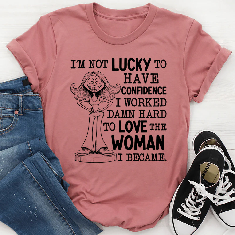 Strong, honest, and deeply empowering — the “I’m Not Lucky to Have Confidence, I Worked Damn Hard to Love the Woman I Became” T-shirt is for those who built their self-worth through growth, struggle, and self-acceptance. It’s not luck—it’s self-work and resilience.