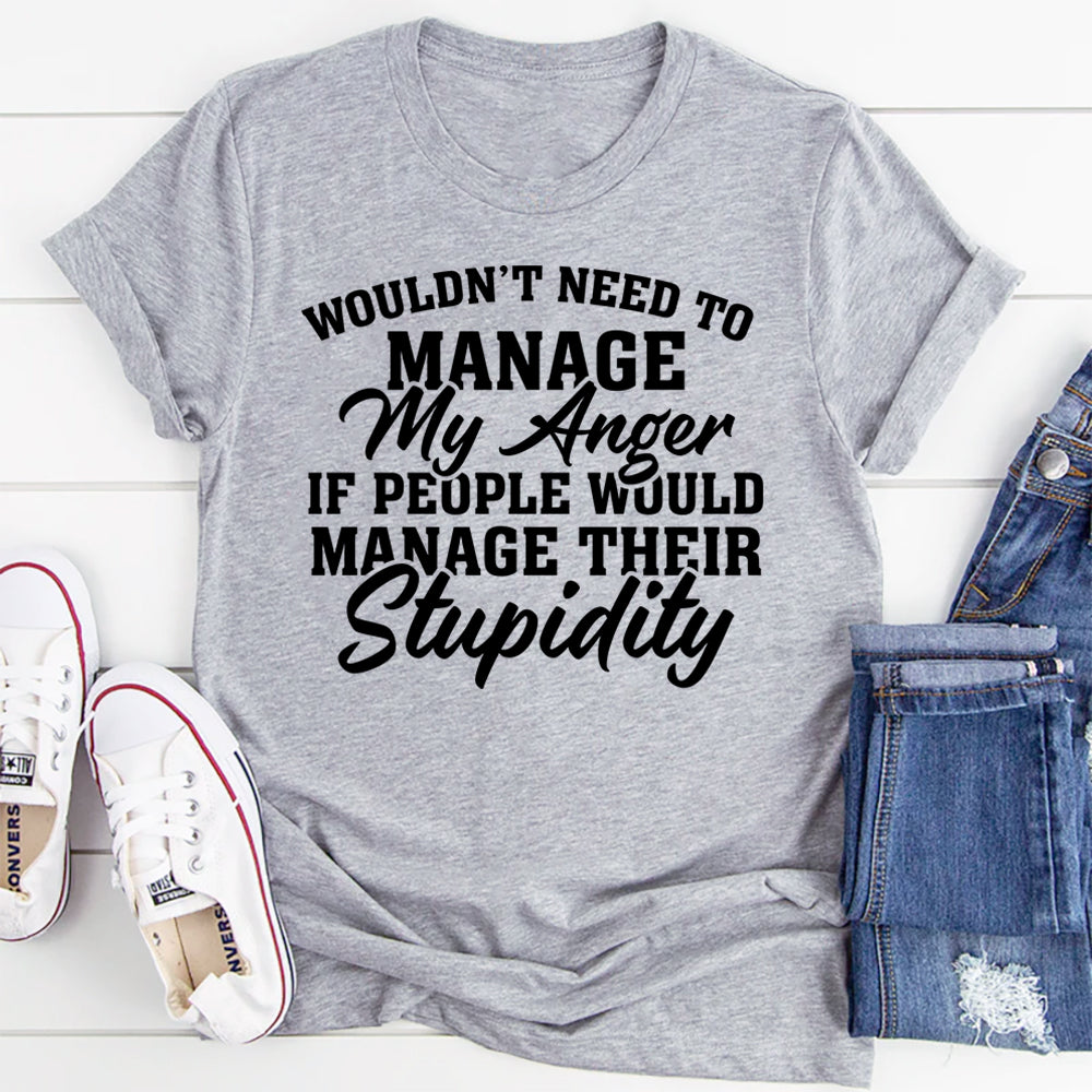 Funny, bold, and unapologetically relatable. The “Wouldn’t Need to My Anger Manage If People Would Manage Their Stupidity” t‑shirt delivers humor with a sharp dose of truth. Perfect for anyone who’s fed up with nonsense and isn’t afraid to call it out.