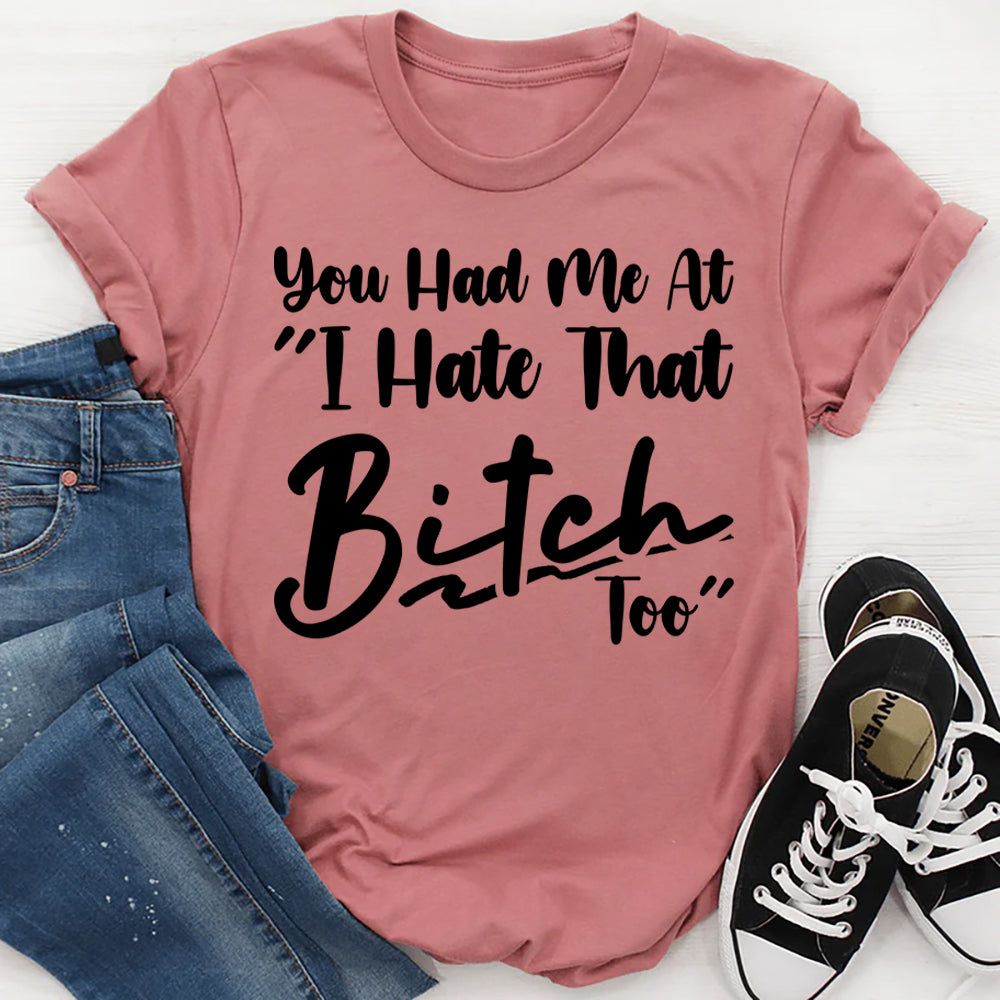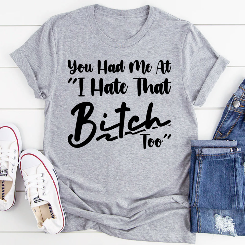 Bold, sassy, and unapologetically funny. The “You Had Me at ‘I Hate That Bitch’” t-shirt is perfect for anyone who thrives on honesty, sarcasm, and a touch of drama. It’s a playful nod to friendship, shared humor, and those moments when you instantly connect over mutual opinions.